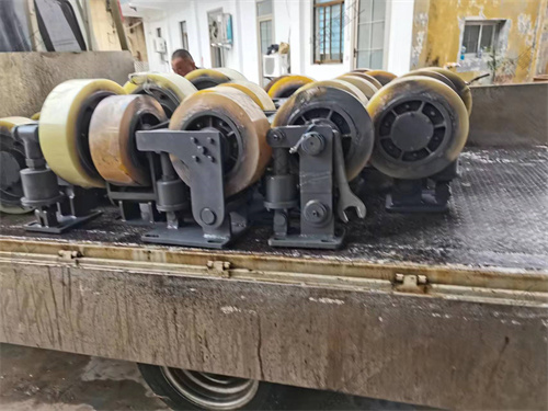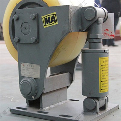 L系列滾輪罐耳用于礦山提升容器的導(dǎo)向緩沖,本產(chǎn)品采用先進(jìn)的密封技術(shù),適應(yīng)淋水、煤塵等惡劣環(huán)境。輪頭安裝采用三鎖緊結(jié)構(gòu),徹底避免掉輪頭事故的發(fā)生。滾輪采用四氫呋喃-環(huán)氧丙烷共聚醚型聚氨酯澆注,具有高彈性、耐撕裂、抗水性、抗油性的優(yōu)點(diǎn)。滾輪磨損補(bǔ)償調(diào)節(jié)采用左、右旋螺桿,調(diào)節(jié)迅速便捷。機(jī)座、擺架采用優(yōu)質(zhì)鋼板焊接成型,體積小、重量輕,安裝輕便。滾輪罐耳主要由輪軸、支架、緩沖裝置、底座等組成。