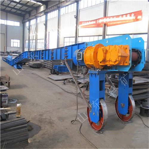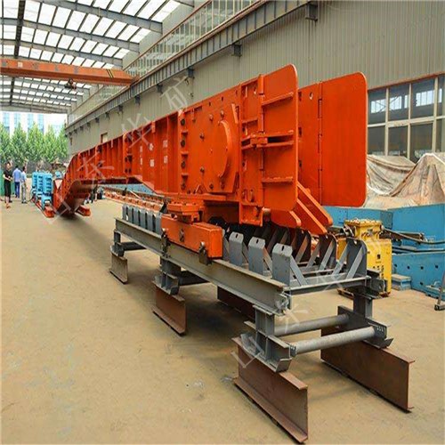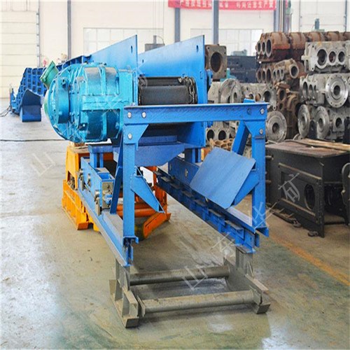 刮板轉載機是一種可以縱向整體移動的重型刮板輸送機,其長度較小,便于隨著采煤工作面的推進和帶式輸送機的收縮而整體移動。轉載機安裝在采煤工作面運輸巷中,與可伸縮帶式輸送機配套使用,同工作面刮板輸送機銜接配合順槽用刮板轉載機有軋制中部槽組裝式和整體組焊箱式結構兩種,主要用于綜合機械化采煤,在長壁工作面刮板輸送機和順槽可伸縮皮帶機之間起轉載輸送煤炭的作用。使用轉載機后,可以避免順槽可伸縮皮帶機機尾的頻繁移動,從而保證工作面生產(chǎn)的順利進行。刮板轉載機主要應用于高產(chǎn)、高效綜合機械化工作面順槽轉載輸送煤炭。它是由中部槽、鏈條、刮板及牽引系統(tǒng)組成。