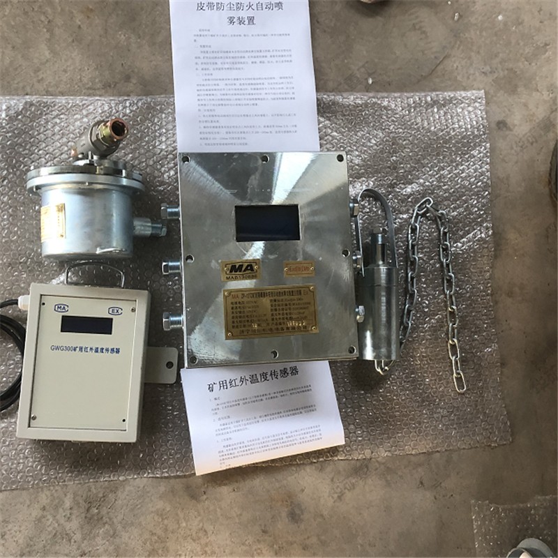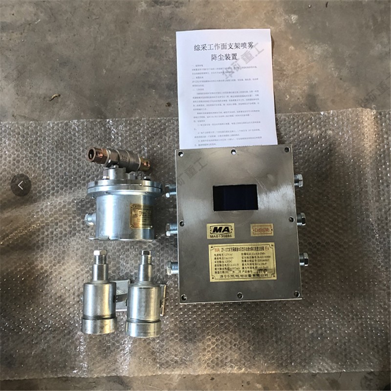 ZP-127Z礦用隔爆兼本安型自動灑水降塵裝置主控箱、GUR8礦用本質安全型熱釋紅外傳感器、DFH-20/7型礦用本安型電動球閥以及管路噴嘴等。