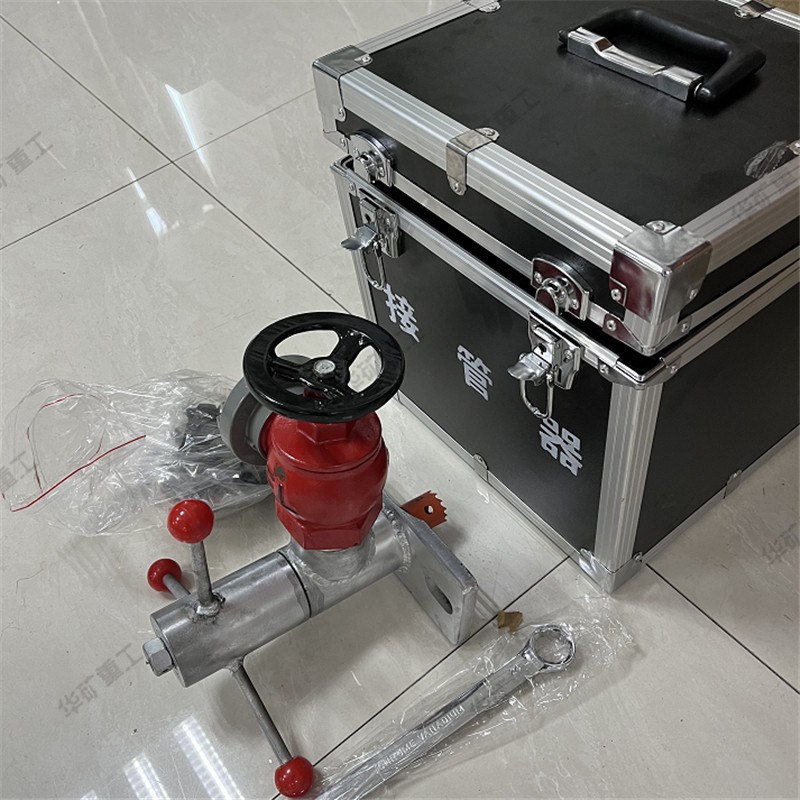 該產(chǎn)品能有效在井上,井下無(wú)出水口或高壓風(fēng)管上開(kāi)孔,是一種理想的輕便型工具。當(dāng)井上,井下發(fā)生火災(zāi)時(shí),有水管而無(wú)法取水時(shí)。使用接管器能快速引出壓力水滅火,也可引出高壓風(fēng)管中新鮮空氣供遇險(xiǎn)人員呼吸,以爭(zhēng)取營(yíng)救時(shí)間。廣泛適用于礦山救援,工廠(chǎng),具有結(jié)構(gòu)緊湊,安全,使用方便靈活等特點(diǎn)。